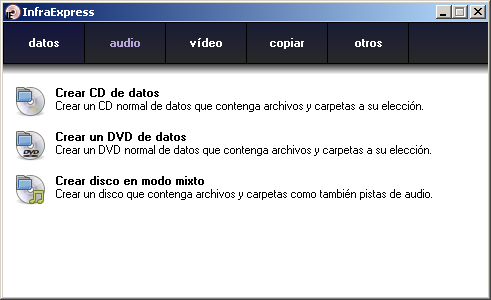 - Creación de proyectos de datos, audio y mixtos para ser grabados en discos físicos o imágenes de disco