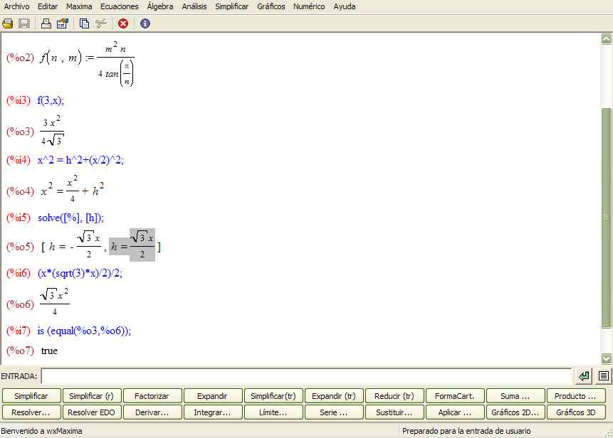Se recomienda su uso conjunto con el interfaz wxMaxima